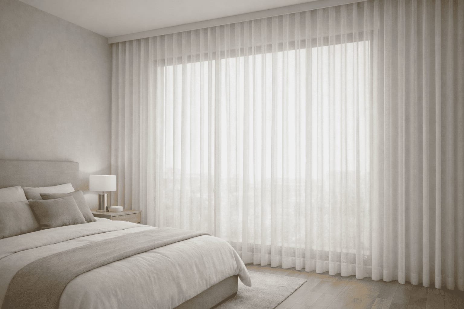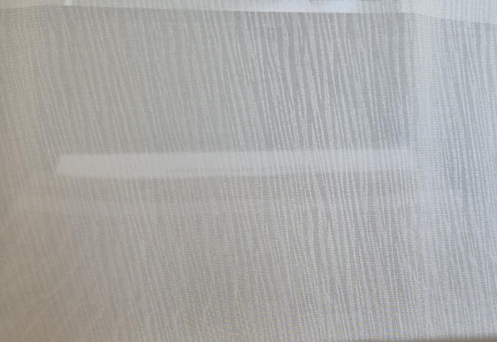 This fabric features a refined linear ribbed surface with a subtle self-textured pattern that creates a soft vertical grain effect. The off white tone enhances its minimal and contemporary appeal, making it suitable for understated luxury interiors. Its sheer construction offers an elegant fall with a light, airy drape that works beautifully for curtains while also lending a smooth, structured finish for cushion upholstery. The matte texture ensures a natural look without excessive shine.