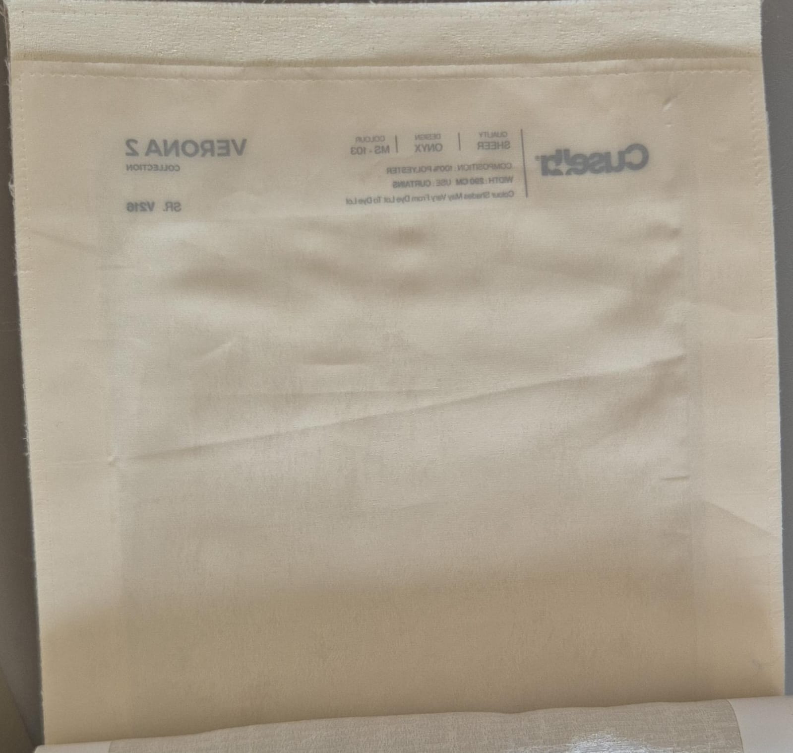 The Verona 2 ONYX in Off White features a soft grain self-textured surface with a refined sheer structure. The design is minimal and elegant, offering a subtle woven depth that enhances light diffusion without visible heavy patterning. Its lightweight texture feels smooth and airy with a matte finish, allowing curtains to fall in a graceful, fluid drape. The fabric’s balanced structure also makes it suitable for cushion covers, adding softness without bulk while maintaining a premium contemporary appeal. Crafted from 100% polyester, this sheer fabric offers durability, easy maintenance, and long-lasting performance for both curtains and cushions. Colour shade may vary from dye lot to dye lot, and fabric appearance in images may differ from the actual material. For accurate colour and texture confirmation, customers are advised to order a fabric sample.