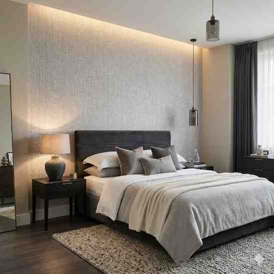 This premium wallcovering features a sophisticated vertical strata design, characterized by fine linear texture and a mottled, woven appearance. The intricate self-pattern creates a tactile surface that is both modern and elegantly rugged, adding dimension without overwhelming the space. The visual mood is calm and contemporary. The material composition utilizes a durable vinyl coating over an eco-friendly paper base. This ensures a high-quality finish that is not only visually pleasing but also practical for various interior environments. The surface is textured, providing a refined, soft matte feel to the touch. Engineered for both aesthetic appeal and longevity, this wallpaper is fully scrubbable and offers good lightfastness. The material is designed for straightforward installation with paste-the-wall technology and is dry-strippable for future updates