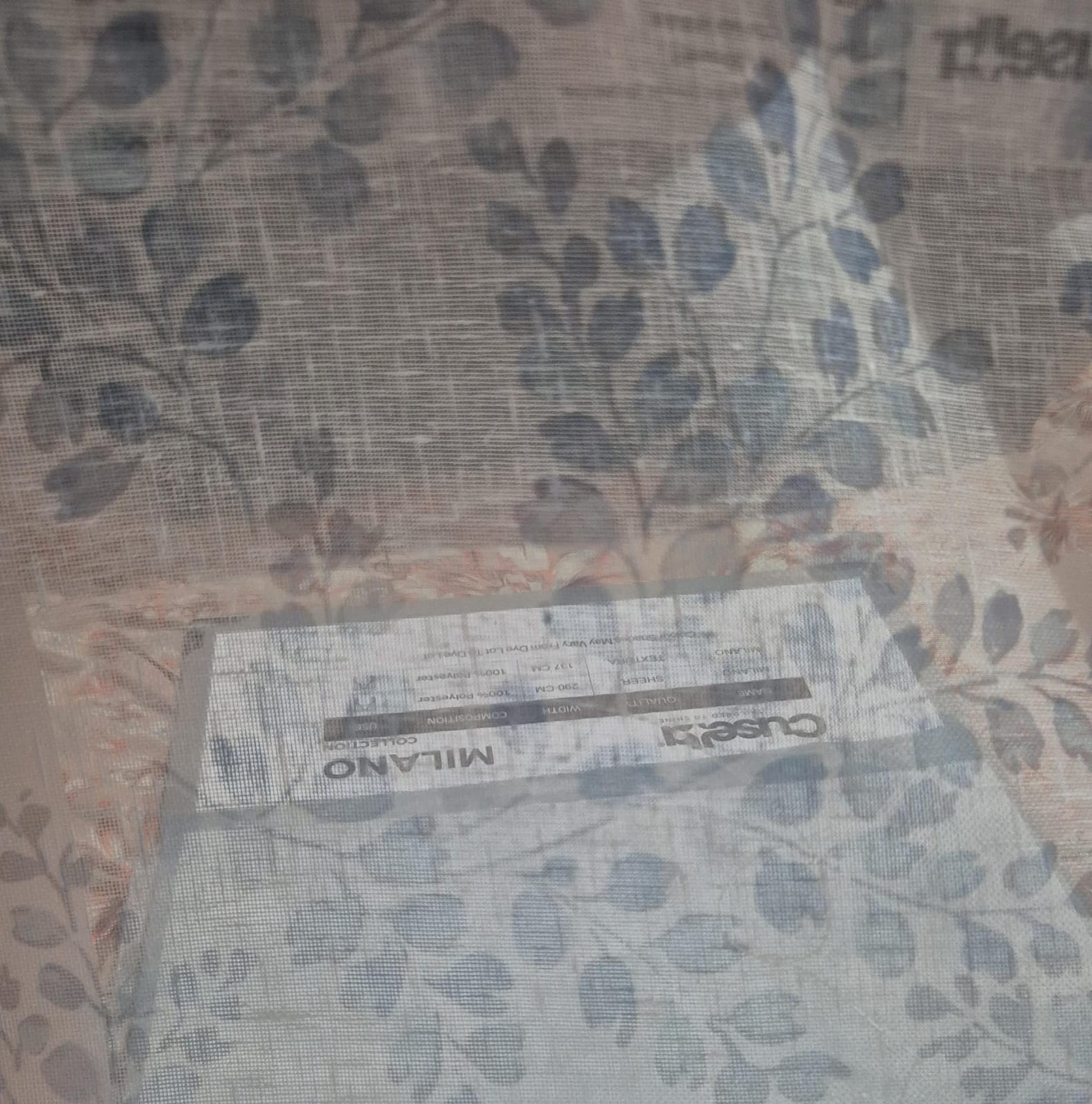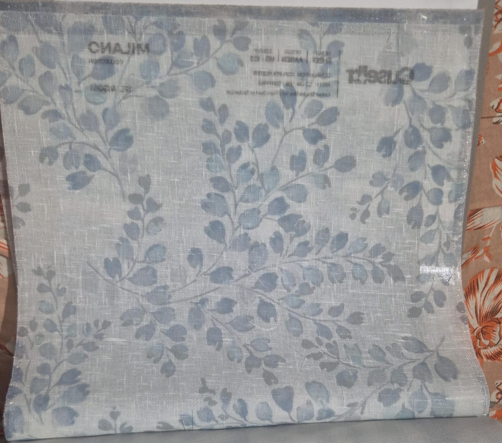 This fabric features a graceful flowing botanical vine pattern spread across a soft sheer base. The organic arrangement of leaves and slender branches creates a natural, airy design that adds calm elegance to interiors. The subtle blue tone enhances its fresh and contemporary character. The texture feels light, smooth, and naturally flowing, allowing daylight to filter beautifully through the fabric. Its soft drape makes it ideal for elegant curtain panels, while the refined botanical print also works perfectly for decorative cushion covers that complement sofas and accent seating. Crafted from 100% polyester, this sheer fabric offers durability, easy maintenance, and long-lasting colour clarity. It is suitable for both curtain fabric and cushion fabric applications in premium living spaces. Colour shade may vary from dye lot to dye lot, and fabric appearance in images may differ from the actual material. For accurate colour and texture confirmation, customers are advised to order a fabric sample before final selection.