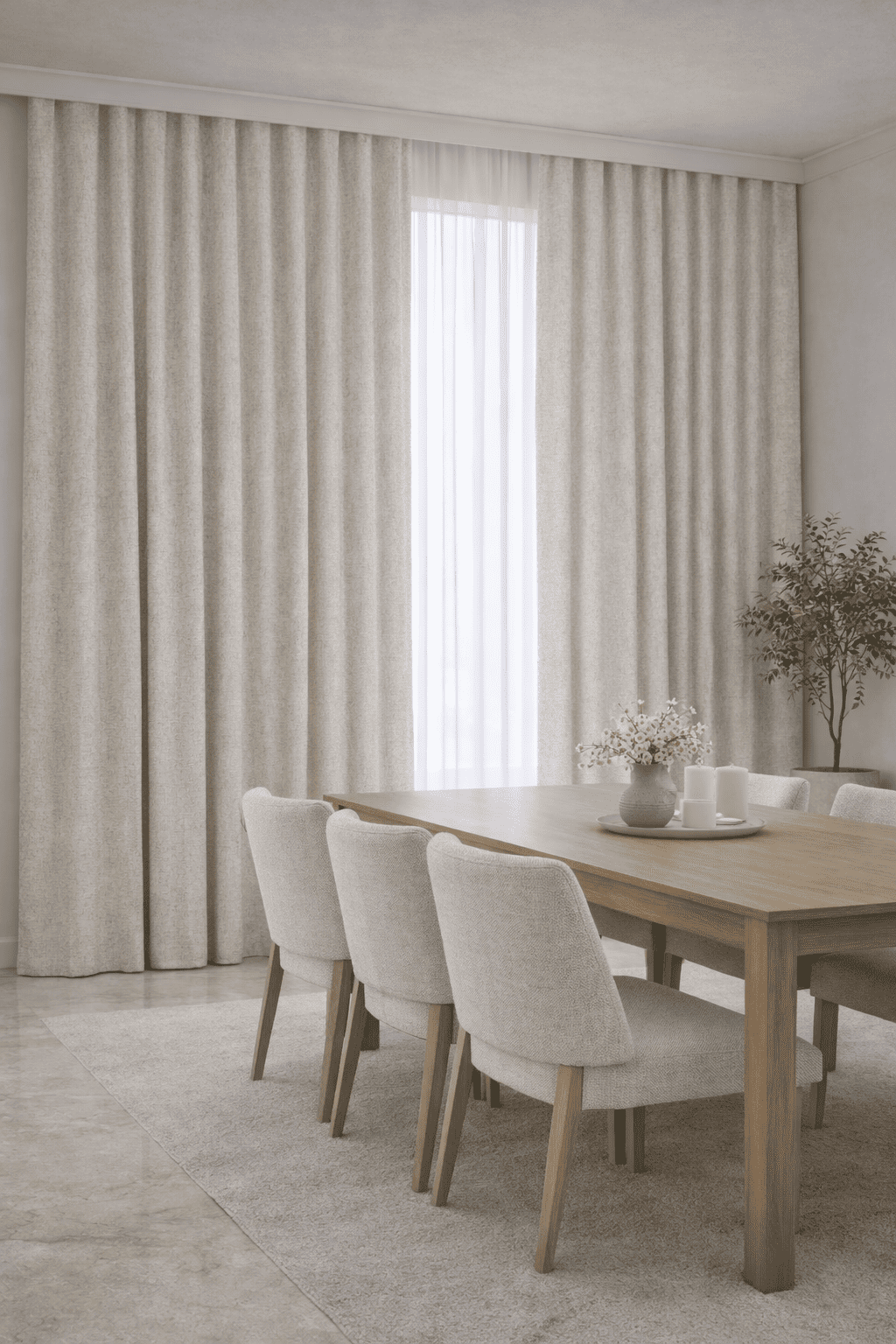 This fabric features a fine micro basket weave structure that creates a subtle, uniform textured surface. The tightly woven pattern gives it a refined and balanced appearance, making it ideal for contemporary and minimal interiors. The self-design remains understated yet visibly rich. The texture feels softly structured with a natural matte finish. It offers a graceful drape for full-length curtains while maintaining enough body for cushion covers and sofa cushions. The woven depth enhances the overall premium look without appearing heavy or bulky. Made from a balanced blend of 25% cotton and 75% polyester, this fabric combines natural softness with durability and easy maintenance. Colour shade may vary from dye lot to dye lot, and fabric appearance in images may differ from actual material. For accurate colour and texture confirmation, customers are advised to order a fabric sample before final purchase.