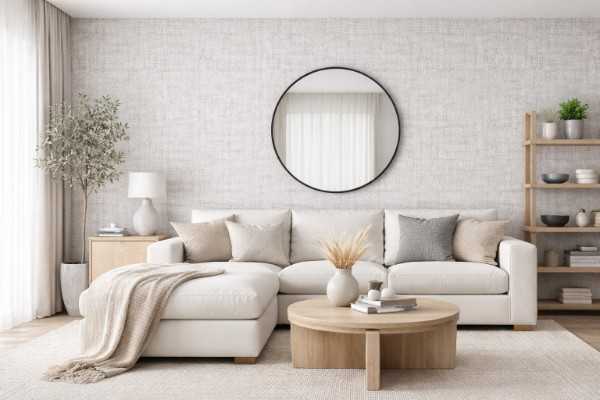 This sophisticated wallcovering features a finely woven textile texture, inspired by natural reed fibers. The detailed, relief pattern provides depth and a tactile surface that is both modern and inviting. The overall look is structured yet organic, creating a calm and elegant atmosphere in any room. Crafted from premium materials, this design utilizes a durable vinyl coating on an eco-friendly paper base. This combination ensures a long-lasting, high-quality product that is both beautiful and sustainable. The vinyl surface makes it suitable for various living spaces, including kitchens and hallways. The application method is efficient, requiring paste to be applied directly to the wall, which simplifies installation. The material is designed for both durability and style, offering good lightfastness and being fully washable, making it a practical choice for contemporary homes.