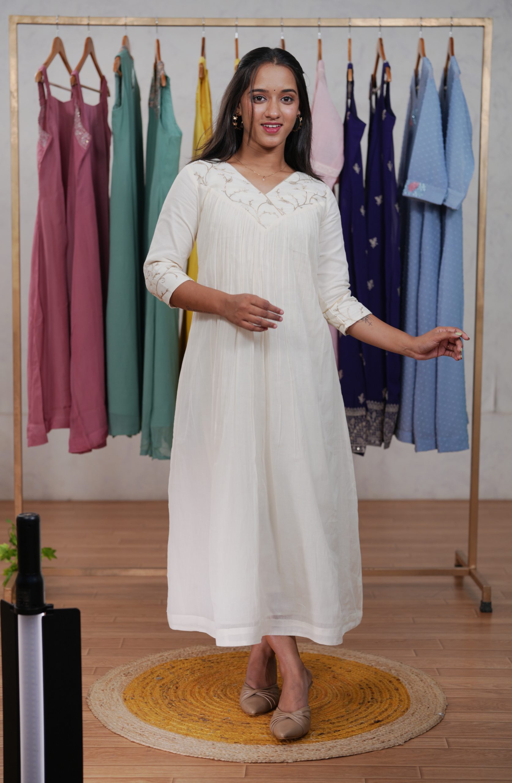 Design: Embroidery on the yoke with full sleeves and ankle-length finish