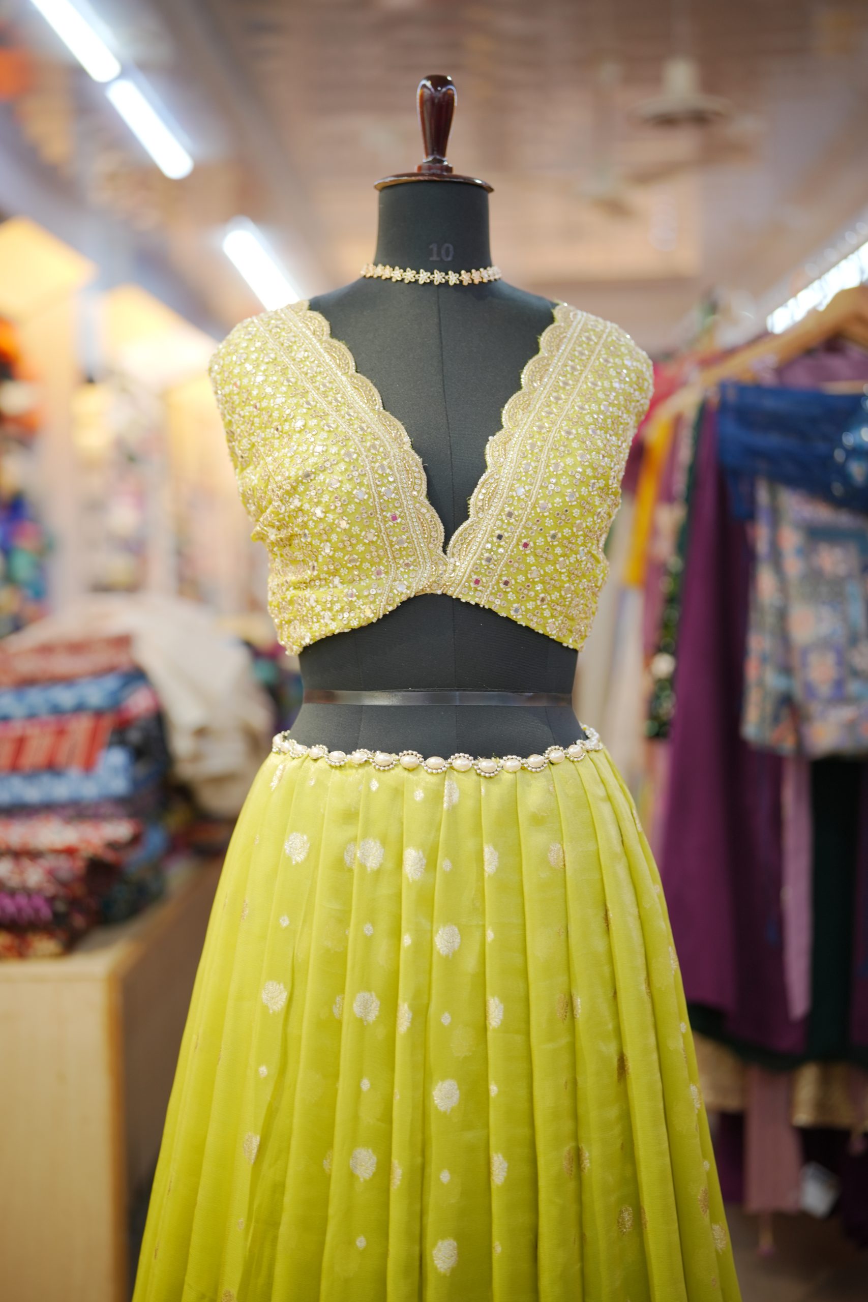 • Design: Floral and geometric embroidery with sequins, beads, and metallic threadwork