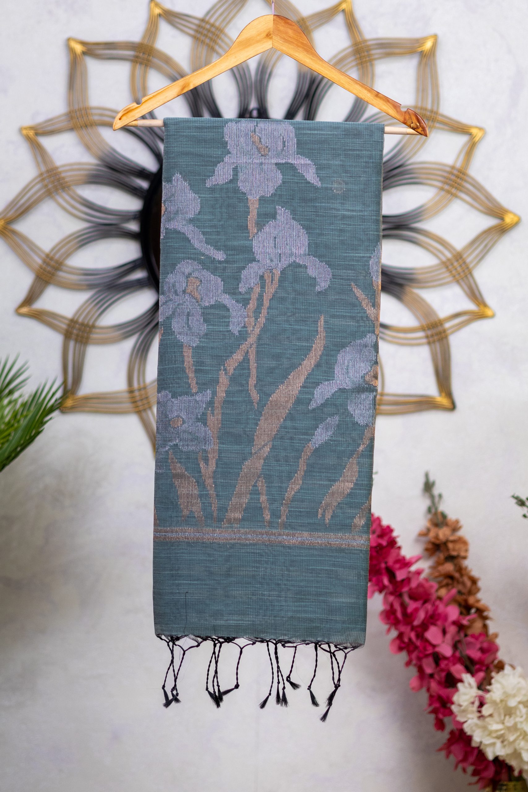 Be the first to review “Semi Jute Saree with Antique Butti & Jamdani Pallu”