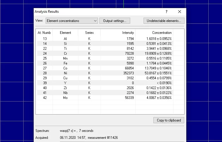 ElvaX Plus spectrometer is used for quantitative and qualitative analysis of the elemental composition of metal alloys, liquids, powders, food and biological samples, as well as samples deposited on surfaces or filters, in a wide range of element concentrations. Analyzer’s detecting limit is better than 1 ppm for most elements in a light matrix